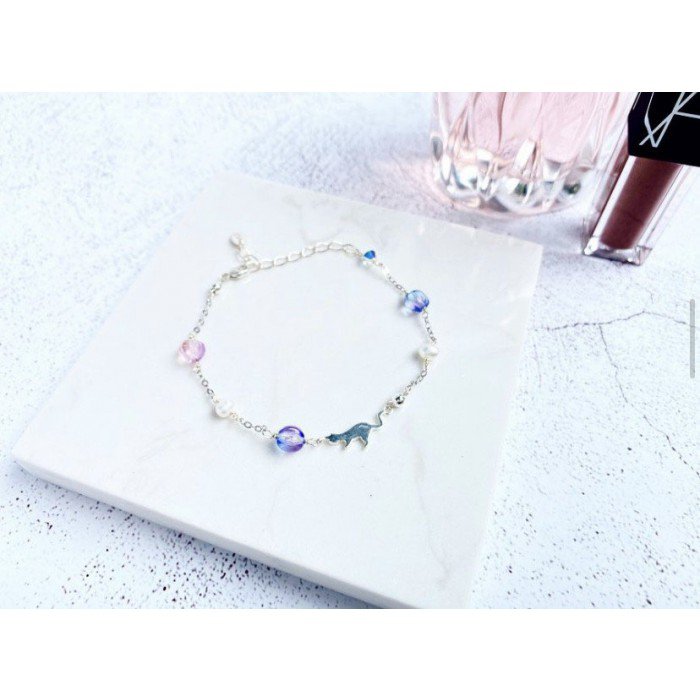 925純銀小貓配捷克琉璃珠手鏈 925 silver kitten, glass beads bracelet -可愛小貓咪剪影 Cute kitten charm - 6mm捷克琉璃, 5mm 淡水小珍珠, 4mm 925 銀珠。 6mm Czech glass beads, 5mm freshwater pearls and 4mm 925 silver beads ⁣- 滿$650免費速遞⁣ free express shipping for purchase over HK$650 - 配抺銀布,防潮絨布袋,盒子 silver cleaning cloth, anti-tarnish velvet bag and box included